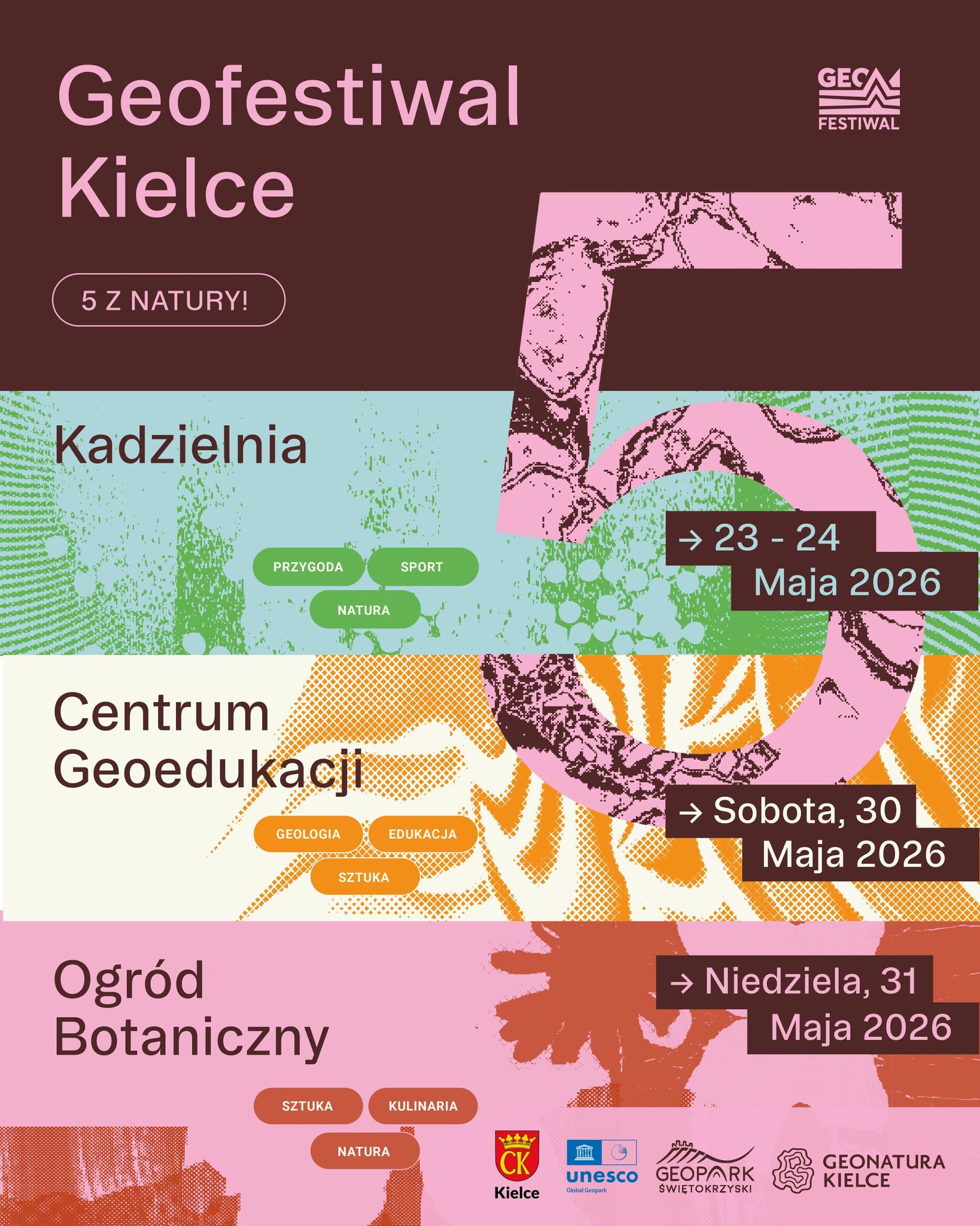 Prezentujemy pierwszą zapowiedź oprawy graficznej Geofestiwalu 2026 w Kielcach. Za koncepcję odpowiada Katarzyna Szewczyk – projektantka i edukatorka specjalizująca się w komunikacji wizualnej.