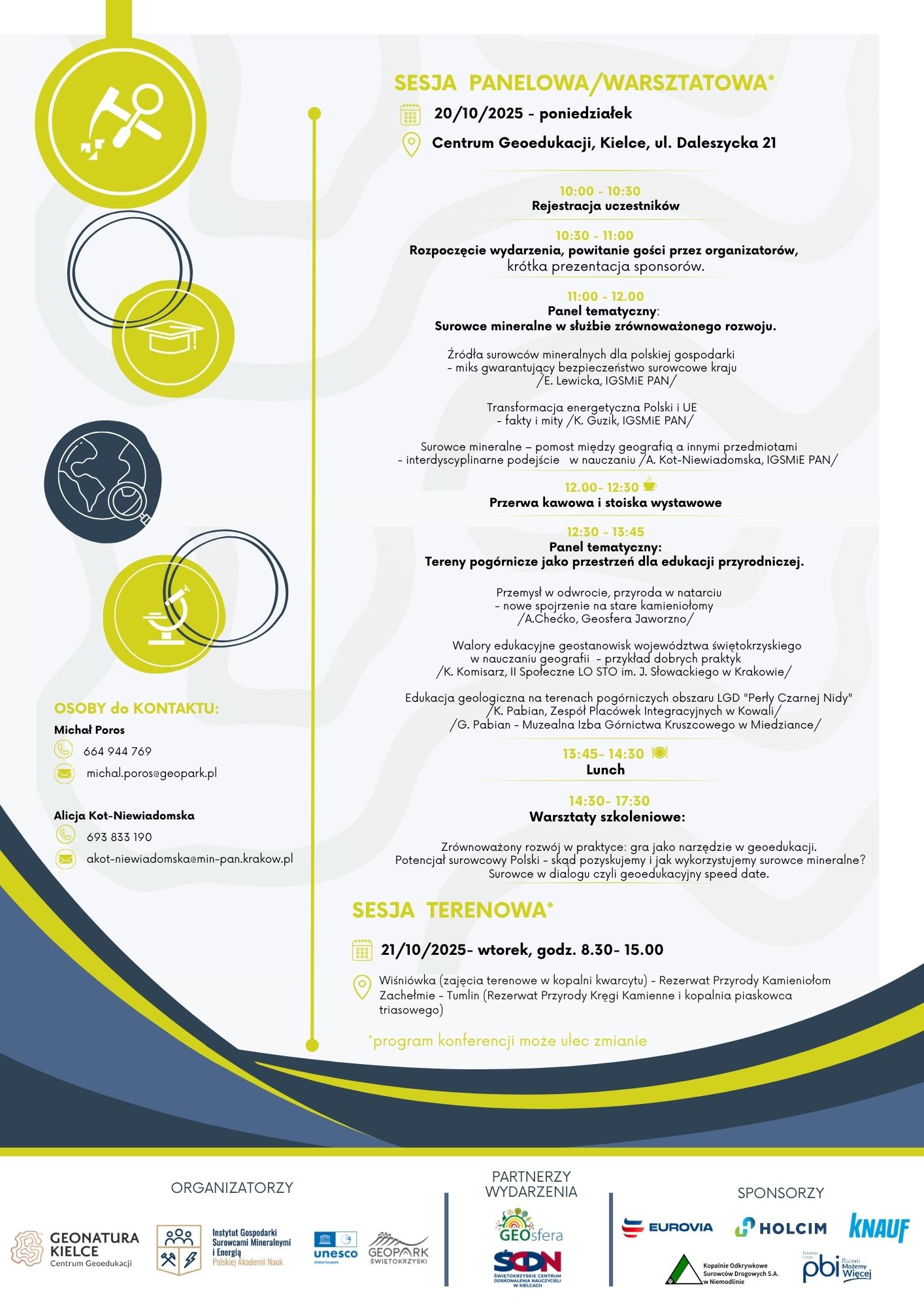 Serdecznie zapraszamy do udziału w drugiej edycji Ogólnopolskiej Konferencji poświęconej roli surowców mineralnych w życiu człowieka. Spotkanie będzie okazją do pogłębionej refleksji nad znaczeniem geologii i górnictwa we współczesnym świecie, a także nad edukacyjnym potencjałem terenów pogórniczych.