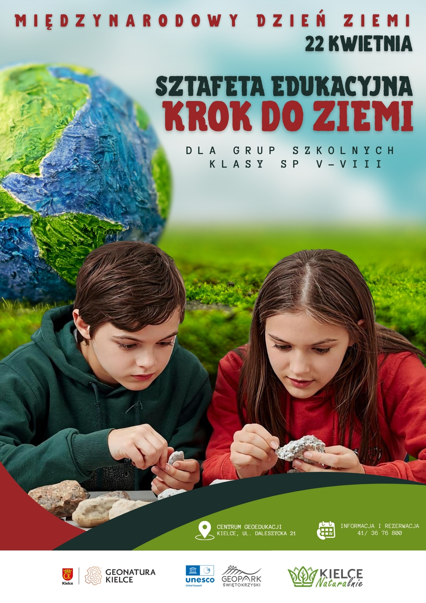 Zapraszamy uczniów klas V–VIII szkoły podstawowej  do udziału w wydarzeniu, przygotowanego z okazji Międzynarodowego Dnia Ziemi, – sztafetę warsztatów, gier i zabaw. Organizacja wydarzenia właśnie w dniu 22 kwietnia nie jest przypadkowa – to symboliczna data, która na całym świecie przypomina o konieczności dbania o Ziemię. Udział w sztafecie to nie tylko zdobywanie wiedzy, ale także kształtowanie postaw proekologicznych i budowanie świadomości, że każdy z nas ma realny wpływ na stan środowiska.